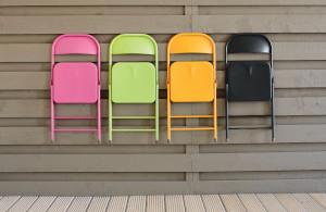 Top tip: Installing hooks on your walls or railings will allow you to hang your furniture between outings. Treat them to a wash of colour to make your display even more decorative. This colourful collection has been created with our Garden Paint in Pink Jasmine, Lime Zest, Sundial and Blackbird.